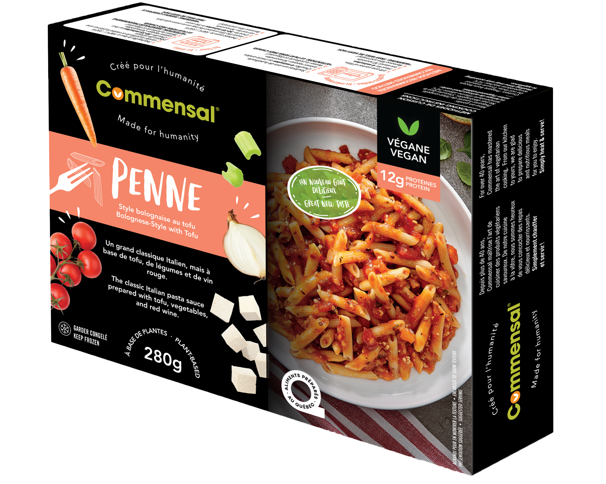 Ingredients: Sauce (tomatoes, water, onion, carrot, celery, tofu, tomato paste, canola oil, textured soy protein, sugar, red wine, modified corn starch, natural flavor, garlic, salt, yeast extract, herbs, potassium chloride, spices, sulphites), Cooked pasta (water, wheat semolina, durum wheat flour, oil canola, xanthan gum).